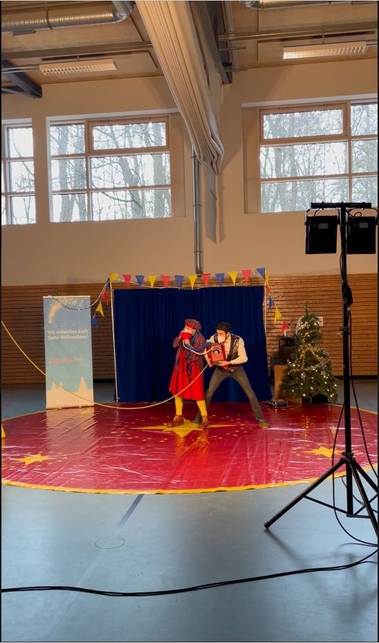 | Zahlreiche Weihnachtswünsche erfüllten sich auch 2021 wieder zur grßen Freude von Schülerinnen und Schülern – auch unter den besonderen Bedingungen der Pandemie. Auch wenn das große Fest wegen der Pandemie ausfallen musste, beschenkte die KastanienHof Stiftung ihre Kölner Förderschulpartner und die Kölner KiDs Wohngruppen mit Sportgeräten, Spielen und Fördermaterial. Die Geschenke wurden an die Schulen geschickt oder per Boten gebracht. Unternehmen Wunschzettel 2020 mit viel ZircusDank großzügiger Spenden der Sponsoren im Wert von insgesamt rund 5.000 Euro beschenkte die KastanienHof Stiftung ein Dutzend Kölner Förderschulen 2020 mit Spielzeug für draußen, mit Sportgeräten und Fördermaterial. Unter anderem standen auf den Wunschzetteln: Federballspiele, Basketbälle, Outdoorspiele, ein Spikeball-Spiel und auch ein Gutschein für die Trampolinhalle in Köln war dabei. Die öffnet hoffentlich bald wieder ihre Pforten...In den Jahren zuvor war der große Kinderweihnachtsmarkt im KastanienHof der unterhaltende Rahmen rund um die Geschenkeübergabe mit Darbietungen und Bastelaktionen. Doch Spaß muss auch jetzt sein, mehr denn je – und so engagierte das Stiftungsteam den Kölner Spielecircus: an den zwölf Schulen gab es 16 Auftritte für die jeweiligen Bezugsgruppen. Ein regelrechtes Detektivspiel war das Improvisationstheaterstück, bei dem die Kinder mit den Zirkusclowns auf die Suche nach den Weihnachtsgeschenken gingen. Wenn der Weihnachtsmann wegen der Pandemie nicht kommen kann, wer sonst konnte die ganzen schönen Weihnachtsgeschenke von ihren Wunschzetteln in die Schule bringen? – Auch dafür fand das Stiftungsteam eine maßnahmenkonforme Lösung und die Geschenke kamen sicher in den Schulen an. Obendrein versüßten 310 lecker gefüllte Nikolaustüten den Zirkusbesuch! | ![]() |